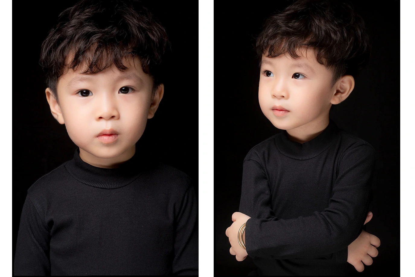 Bé Bánh Bao là một thiên thần bé nhỏ, và buổi chụp hình chân dung nền đen đã làm nổi bật vẻ đẹp tự nhiên và biểu cảm đầy cảm xúc của cậu. Bé rất chịu hợp tác và tỏa sáng trong từng khung hình.