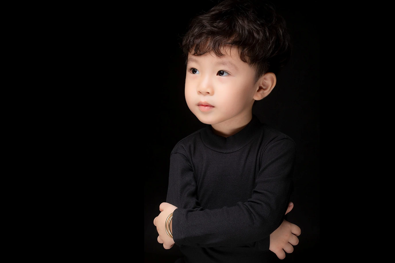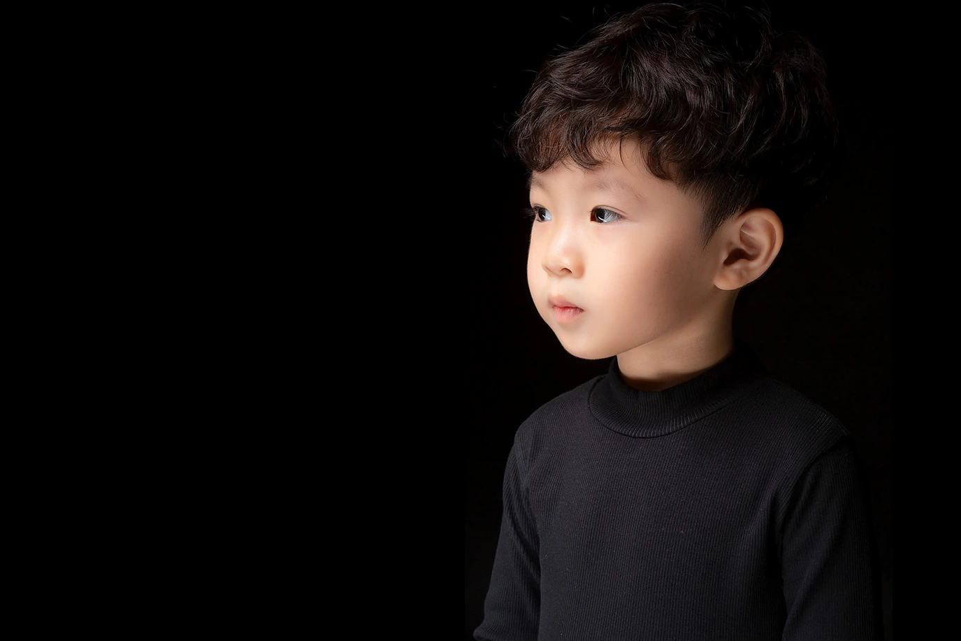 Với nền đen tạo sự tập trung vào bé, từng nụ cười, từng ánh mắt, và từng biểu cảm của Bánh Bao thật sự được ghi lại một cách tuyệt vời. Không gian tĩnh lặng này giúp tôn vinh vẻ đẹp độc đáo của Bánh Bao và lưu giữ những khoảnh khắc quý báu tại tuổi 3.