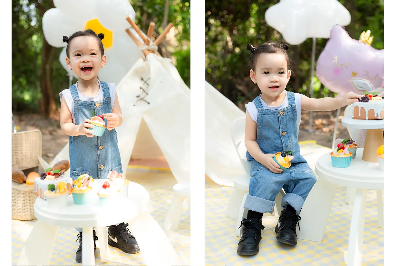 Nói vậy thui, chứ Miu con đang chụp hình kỷ niệm 2 tuổi á. Cả nhà nhìn bánh kem của con thấy thèm hông? Hihi